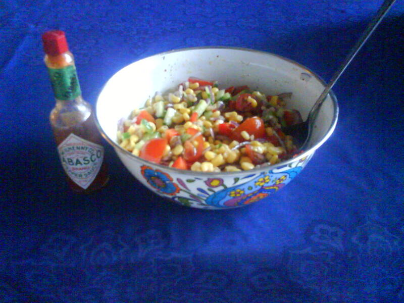 Gott att servera till grillat… Ett basrecept som kan varieras; kanske kan man blanda i oliver eller fetaost? Eller tärnad skinka, eller..…..