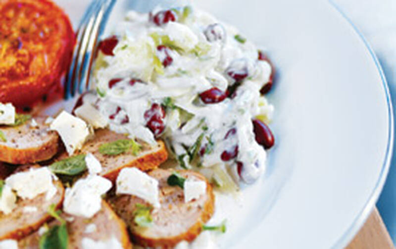 Stekt kyckling och mangosalsa med röda bönor
