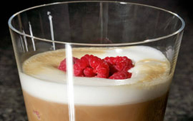 Skumma hallonen direkt med mjölken. Det ger ett lite sötsyrligt, men lent skum. Perfekt till espresson som får en tuff smak av lakrits. Lakritspulver…