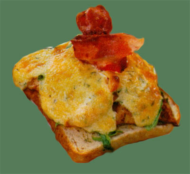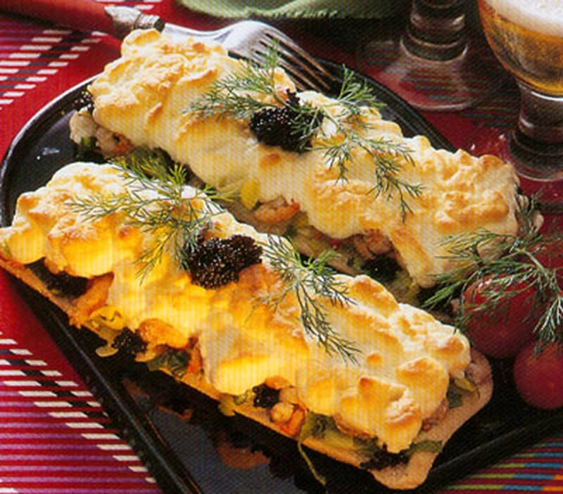 Jättegod varm smörgås med smak av räkor och sparris.