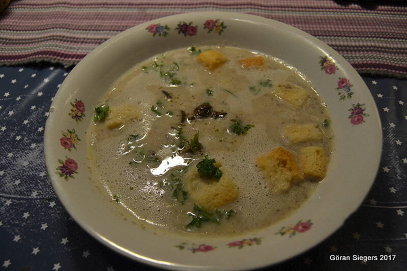 Champinjonsoppa med krutonger