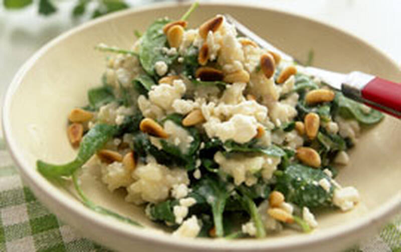 Här får den italienska klassikern smak av Apetinaost, färsk spenat och rostade pinjekärnor.