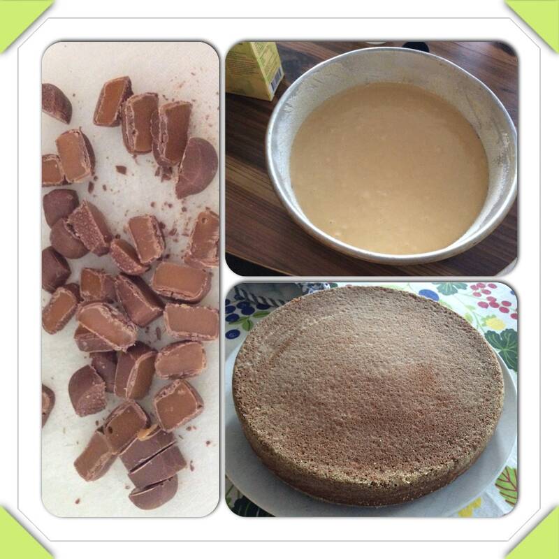 Ett eget recept. Sockerkaka med smak av Dumle.