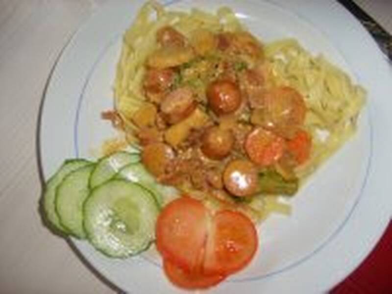 Första gången jag har gjort något med kycklingkorven och det lär inte bli sista. Gott.