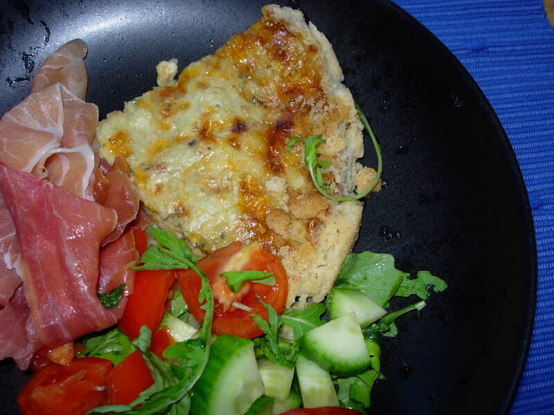 En smakrik paj med skal av fullkornsmjöl och olivolja, proppfyllt med medelhavsfavoriter.