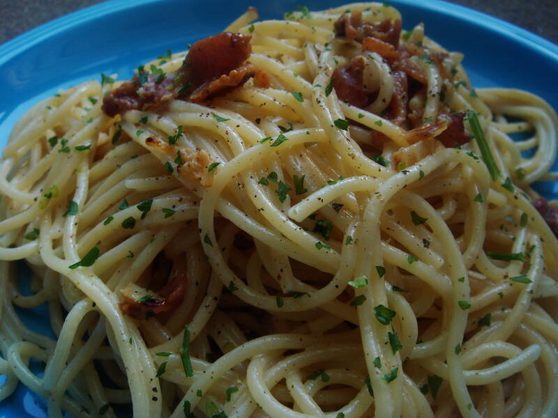Jag har lagat carbonara hur många gånger som helst, och det är en av mina absoluta favoriträtter. Jag lagar den aldrig som man Ska laga den utan gör den istället på mitt sätt- mycket god, smakrik och krämig. Jag har beställt Carbonara i säkert 20 olika städer runtom på våran jord och har i alla år varit galen i denna rätt. Jag har också märkt att många inte ens har svartpeppar i sin carbonara, vilket är chockerande med tanke på att det är därifrån rätten fått sitt namn och man kan inte bara strunta i en sådan viktig ingrediens. Jag vet inte om jag är ensam om att ha i vitlök i carbonara men för mig är det självklart. Prova det om du aldrig testat, det är supergott, och blir inte speciellt starkt. Jag lagar aldrig carbonara exakt lika från gång till gång utan höftar lite och framförallt lagar det med en stor nypa kärlek! På bilden ser inte carbonaran särskilt krämig ut, men jag kan lova dig att det är den!