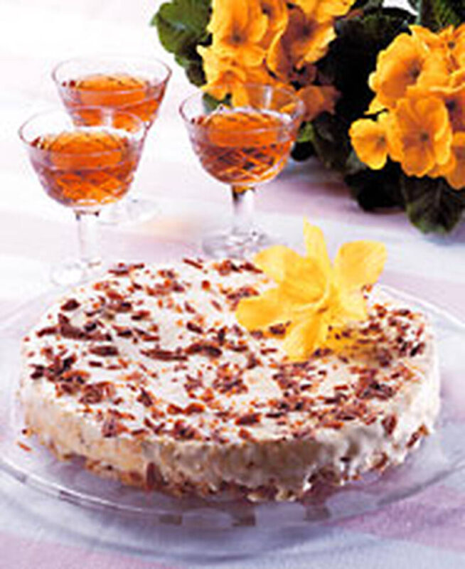 3. Häll smeten i en smord och bröad form med löstagbar kant, ca 25 cm i diameter. Grädda mitt i ugnen i ca 30 minuter. Låt kakan kallna i formen.