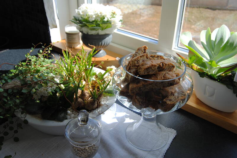 12. Lägg kakorna med snittytan uppåt och torka dem i ugnen ca 45 min. Vänd försiktigt på kakorna efter halva tiden, så att den andra snittytan kommer uppåt.