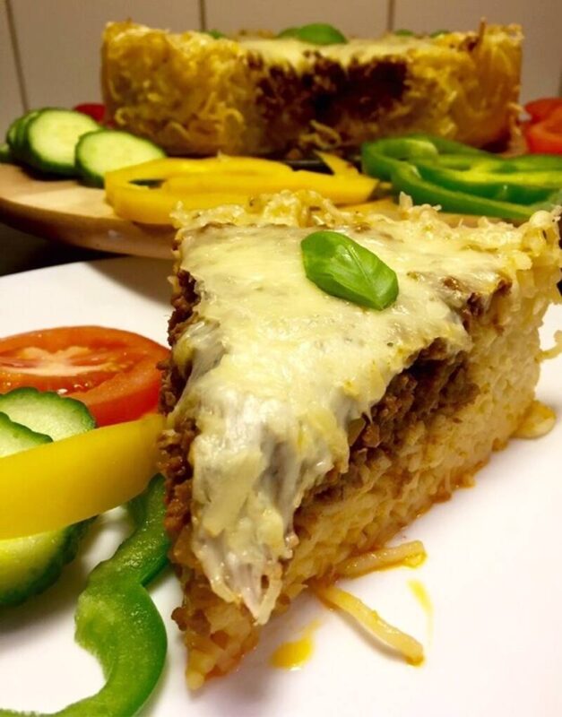 Ett annorlunda och gott sätt att servera spaghetti och köttfärssås. Som tårta!