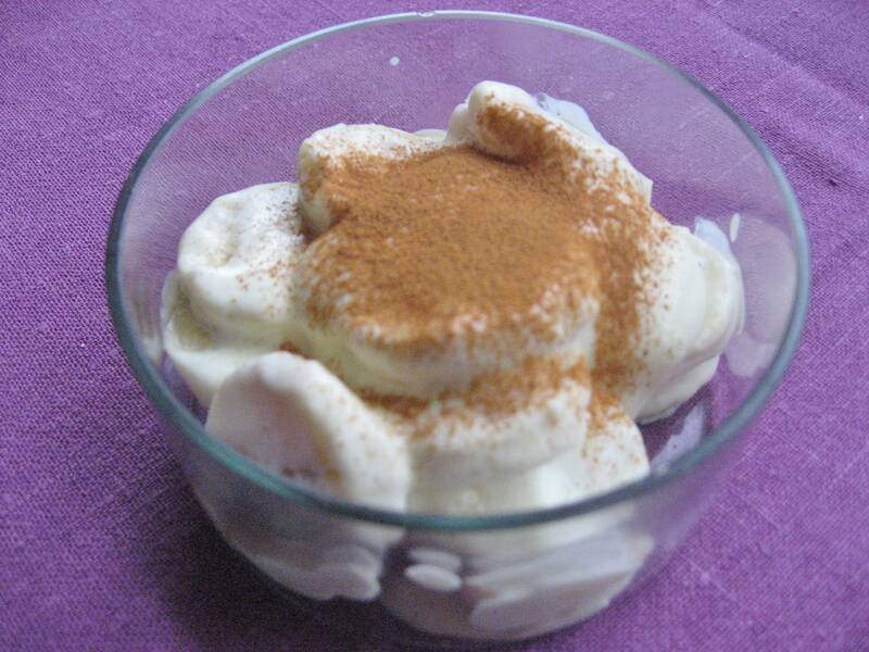 En jätteenkel efterrätt, som kommer från Mexico. Där heter den” Platanos con crema”.