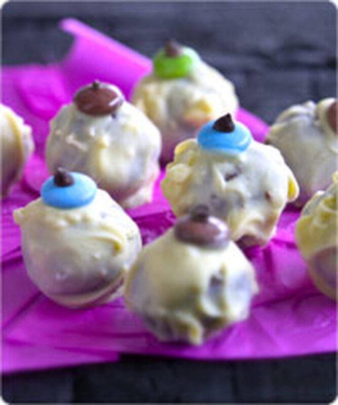 Här kommer bollsläcktets värstingar….. Inför Halloween eller barnkalas. 7 jättebollar eller ca 10 något mindre. Mina barn gillar inte lakritsströssel så det blev choklad…
