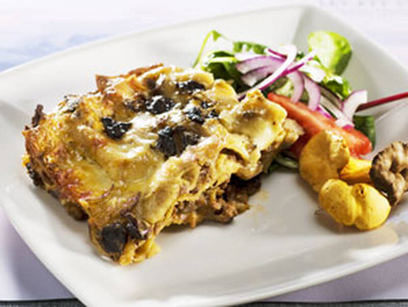 Lasagne är en klassisk italiensk maträtt gjord av lager av pasta, köttfärs och såser, som här fått ett extra kryddig twist med korv och grönsaker.
