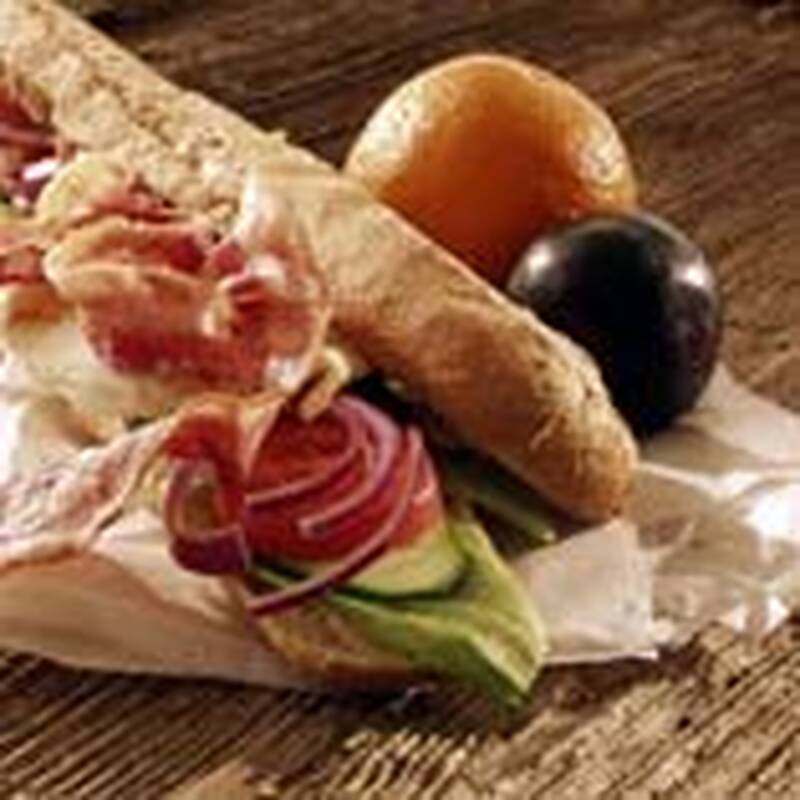 Baguette med ägg och bacon