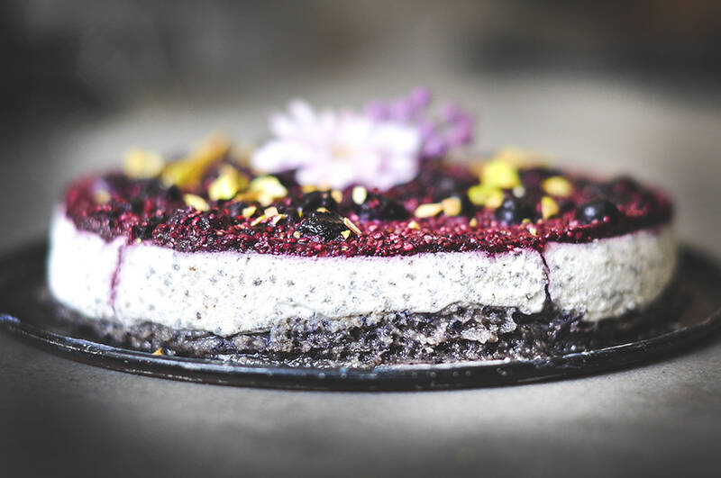 En kombination av vanilj, smält vit choklad, chiapudding och kokosgrädde på en botten av cashewnötter, blåbär och acai toppat med en blåbär- och acaisylt.…