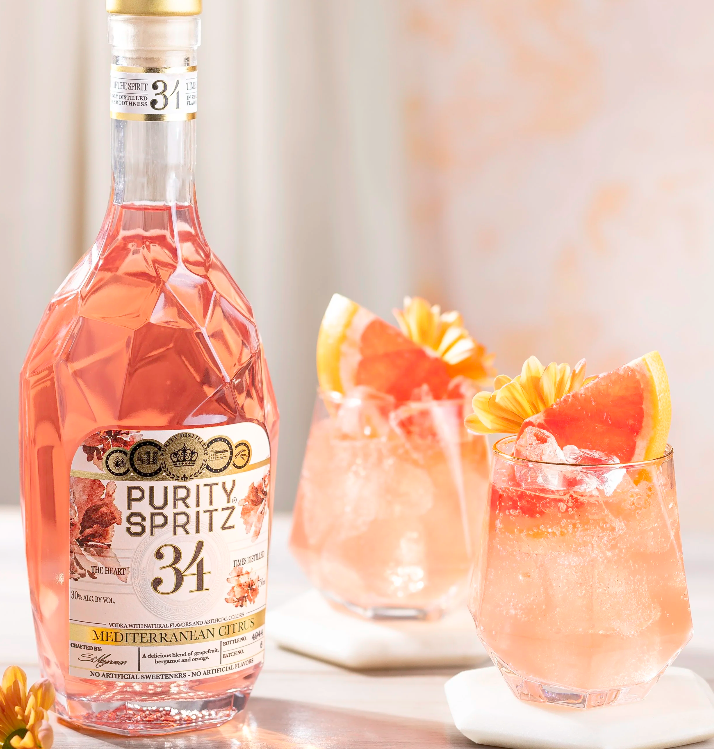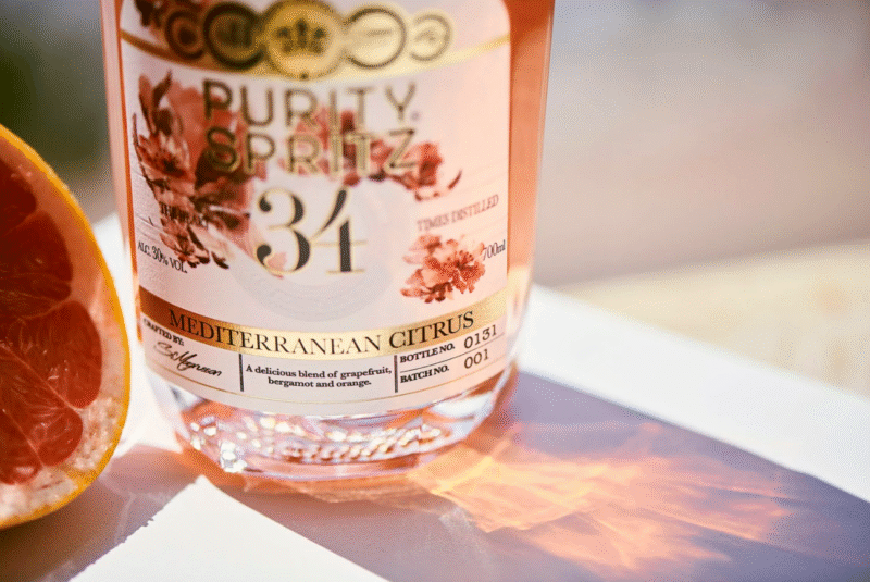 Mediterranean Citrus Spritz tar avstamp i Puritys prisbelönta ekologiska vodka, som koppardestillerats hela 34 gånger för en mjuk och elegant karaktär.